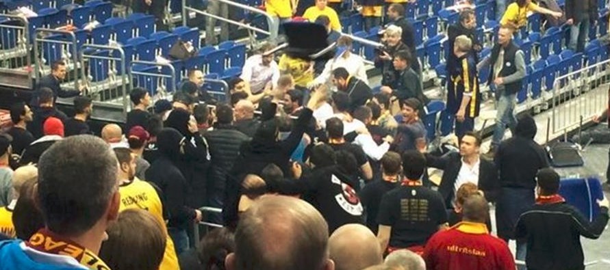 TSİ 22.00'da başlaması gereken karşılaşma öncesinde Galatasaraylı taraftarlar ile Alba Berlinli taraftarlar arasında gerginlik yaşandı. Güvenlik güçleri taraftarlara müdahale ederken, Galatasaray Liv Hospital Başantrenörü Ergin Ataman da mikrofonla anons yaparak, sarı kırmızılı taraftarları sakinleştirmeye çalıştı. Ataman, "Sevgili Ultraslan, Sevgili Galatasaraylılar, sakin olun. Güvenlik güçleriyle çatışmayın, yerinize dönün. Olay çıkarsa Euroleague'den atılırız" diyerek Galatasaraylı taraftarlara uyarıda bulundu.