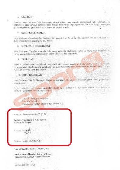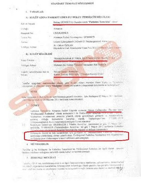 Bordo-mavili kulübün 2 mayıs 2011 tarihinde genç futbolcunun temsilcisi Bektaş Demirtaş ile Hakan Çalhanoğlu'nun transferi için imzaladığı menajerlik sözleşmesini Sporx.com ele geçirirken, sözleşmedeki bir ayrıntı kafaları karıştırdı...