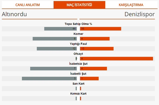 PTT 1.Lig'de 11. hafta maçında Altınordu ile Denizlispor karşı karşıya geldi. İlk yarısı büyük bir mücadeleye sahne olan karşılaşmada, Altınordu ikinci yarıdaki performansıyla sahadan 2-0'lık galibiyetle ayrıldı. Altınordu'ya galibiyeti getiren goller, 62. dakikada Murat Yılmaz ve 75. dakikada Cengiz Ünder'den geldi. Denizlispor'da takımın iki önemli ismi Leozinho ve Leandrinho, sakatlıkları sebebiyle Altınordu karşısında forma giyemedi. Denizlispor karşısında aldığı galibiyetin ardından Altınordu puanını 15'e yükseltti. Denizlispor ise 8 puanda kaldı.