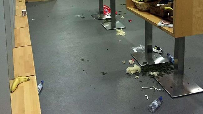 Bayern Münih soyunma odasındaki giyinme kabinlerindeki muz kabukları, etrafa saçılmış su şişeleri, futbolcuların kullandıkları bantlar ve bir köşede yer alan toprak oldukça kötü bir görüntü oluşmasını sağladı.