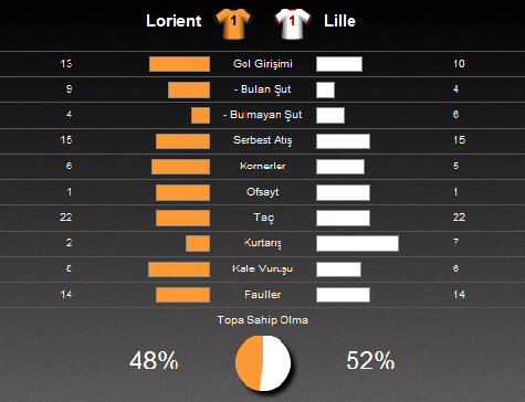 Lorient takımında Kevin Gameiro'nın mücadelenin 12. dakikasında çektiği şut direkten dönerken, Lille takımında ise Eden Hazard 85. dakikada direği geçemeyen bir diğer isim oldu.