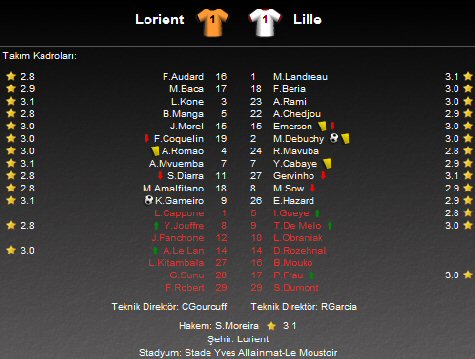 Fransa Ligue 1'de 32. hafta mücadelesinde Lille deplasmanda Lorient ile 1-1 berabere kaldı.
