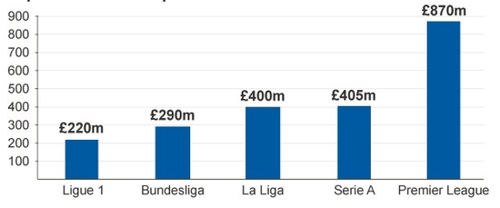 Premier Lig'den Şampiyonlar Ligi'ne giden 4 kulübü, Manchester City, Manchester United, Chelsea, Arsenal, transfer toplam 340 milyon pound artırdılar ve toplam harcamaları %40 oranında arttı.