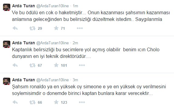Arda Turan daha sonra Twitter adresinden konuyla ilgili olarak şu açıklamayı yaptı;