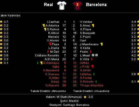 Barcelona'nın forvet hattı ise klasik Pedro, Villa, Messi üçlüsü şeklindeydi. Tek sıkıntı, formsuz Villa ve Pedro'nun bu maçta ne yapacakları idi...