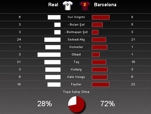 Tüm dünyanın merakla beklediği Real Madrid ile Barcelona'nın Devler Ligi'ndeki ilk buluşması gerçekleşti. Wembley yolunda yarı final ilk maçında Santiago Bernabeu'daki kapışmadan gülerek ayrılan taraf 2-0'lık skorla konuk Barcelona oldu.