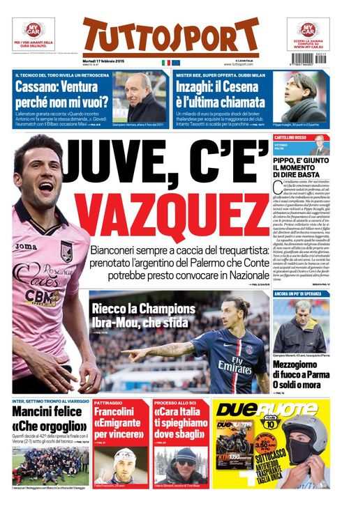 İtalya'nın önde gelen gazetelerinden ''Tuttosport''un manşetinde yer verdiği haberde, Cesena maçında istenen sonucun çıkmaması halinde Filippo Inzaghi'nin görevine son verileceği belirtildi. ''Tuttosport'', Inzaghi'nin ayrılması halinde göreve Luciano Spalletti ya da Galatasaray'dan olaylı bir şekilde ayrılan ve sarı-kırmızılı kulüpten maaşını almaya devam eden Cesare Prandelli'nin geleceğini yazdı.