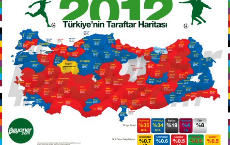 Elektronik şans oyunları sitesi Bilyoner.com, üçüncü defa Türkiye'nin taraftar haritasını çıkardı. 81 ilde yaşayan Bilyoner.com üyelerinin tuttukları takımlar arasında yapılan değerlendirmeye göre; 46 ilde Galatasaray, 32 ilde Fenerbahçe, kalan 3 ilde ise Trabzonspor, Eskişehirspor ve Sivasspor taraftarları çoğunlukta.