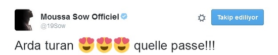 Senegalli oyuncu, Arda'nın klas pası sonrasında, "Arda Turan, ne pas!!!" şeklinde bir tweet attı.