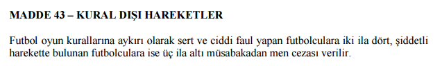 İŞTE FUTBOL DİSİPLİN TALİMATI'NIN 43. MADDESİ