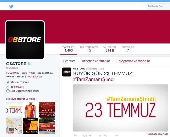 SPORX - Yeni sezon öncesi transfer gündemi yoğun geçen Galatasaray'da bir başka heyecan daha yaşanıyor. Galatasaray Kulübü'nün resmi twitter adresinin, GS Store'un resmi twitter adresinin''Büyük gün 23 Temmuz'' mesajı ve GS TV'nin ekrana koyduğu ''Büyük gün 23 Temmuz'' mesajı ile konulan geri sayım sayacı, taraftarı heyecanlandırırken bu mesajın yeni sezon formalarıyla ilgili olması bekleniyor.