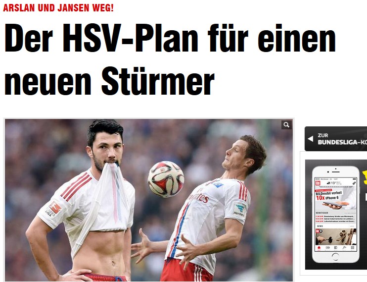 Almanya'nın önde gelen gazeteleri ekonomik olarak da zor bir dönemden geçtiklerinden dolayı forvet transferi için nakit paraya ihtiyacı olan Hamburg'un Jansen ve Tolgay'a gelecek teklifleri olumlu değerlendireceğini yazdı. Almanya'nın en önde gelen gazetelerinden Bild de bu haberi ''Arslan ve Jansen yok! HSV'nin yeni forvet planı'' başlığı ile okuyucularına aktardı.