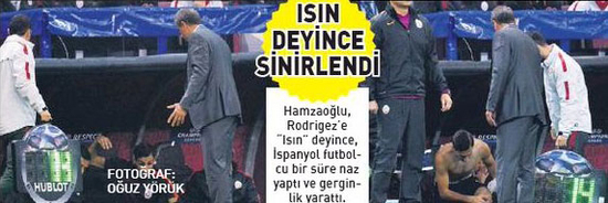 Hamza Hamzaoğlu, Rodriguez'e son dakika "Isın" deyince, İspanyol futbolcu ağırdan alıp, duyduğu memnuniyetsizliği belli etti. Hocasını da sinirlendirdi. Naz yaptı, gerginlik yarattı.