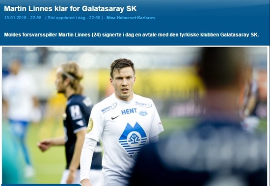 Profesyonel futbolcu Martin Linnes ve kulübü Molde FK ile oyuncunun transferi konusunda anlaşmaya varılmıştır. Buna göre, oyuncunun eski kulübüne Net 2.000.000 EUR tutarında bonservis ücreti ve 500.000 EUR ile sınırlı kalmak şartı ile oyuncunun ilk 11 de yer aldığı her 20 resmi maç tamamlandığında ekstra 100.000 EUR ödenecektir (Herhalukarda 100 resmi maç sonrası Galatasaray, oyuncunun eski kulübüne bir ödeme yapmayacaktır).