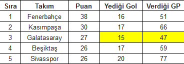 İLK 5'TE EN AZ GOL YİYEN G.SARAY!