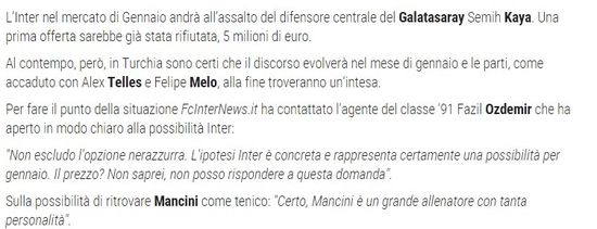 Sezon başında Alex Telles ve Felipe Melo'yu renklerine bağlayan Milano devi, bu transferlerden bir hayli memnun kalmıştı. Semih Kaya için de teklif yapan ama son güne kadar ısrarcı olmayan Roberto Mancini'nin Ocak ayında bu futbolcu için yeniden devreye gireceği iddia edildi.