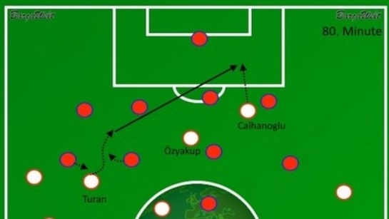 İzlanda karşısında Arda Turan'ın arkasında ise Volkan Şen, Hakan Çalhanoğlu ve Oğuzhan Özyakup görev yapıyor.