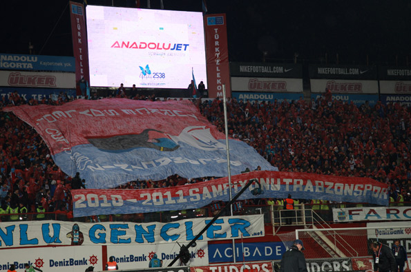 Trabzonspor taraftarları, terazinin yer aldığı '''Çok şey değil sadece adalet istiyoruz, Güneş de bizim Dolunay da bizim, kıskananlar çatlasın, Tolunay hocam Şampiyon yap bizi, Cehennemde yak bizi, Türkçe söyledik anlamadınız, Cup ıs ours, 2010-2011 sezonu şampiyonu Trabzonspor'' yazılı pankart açtılar.