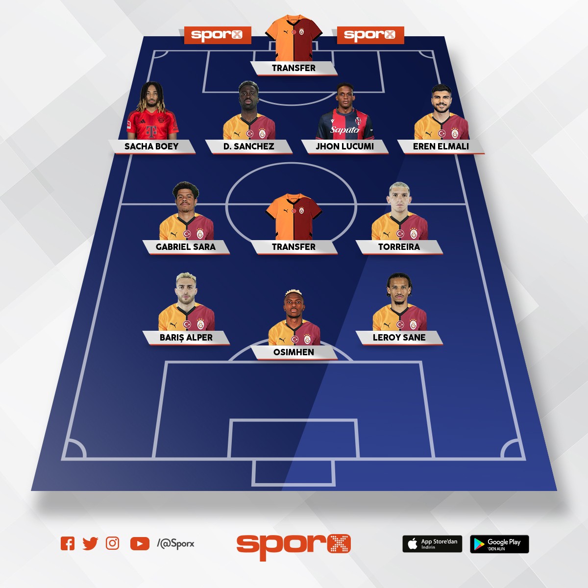 +DC,DM,MC,AMR,ST(Osimhen olmazsa x2),İlkay.