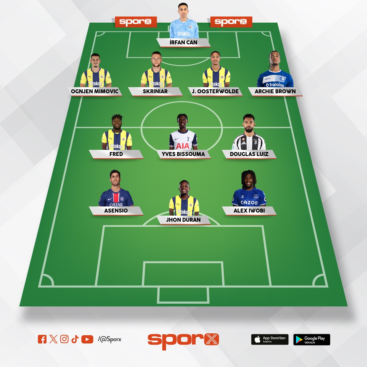 Jon duran ,en neşri ,nene ,kerem ,asensio, sinameki, brov  ,rdiger,  Melih , Gökhan ,ederson