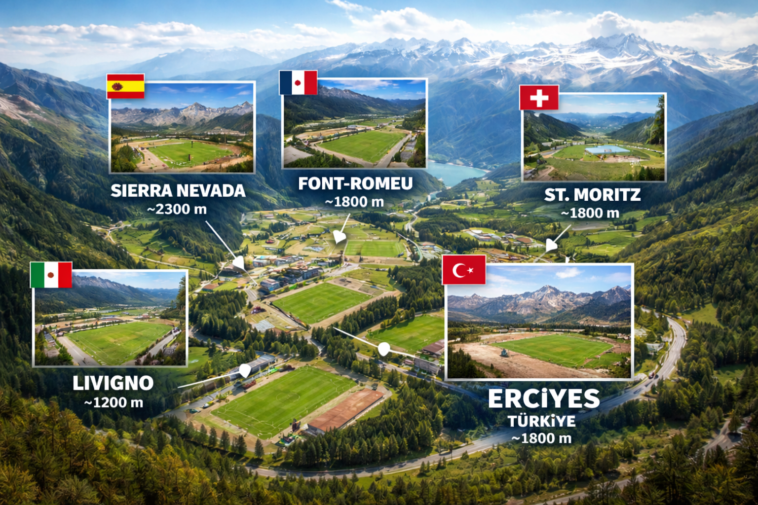 Bu merkezler birlikte değerlendirildiğinde ortaya çıkan tablo oldukça net: Avrupa'daki elit sporcuların büyük bölümü, performans gelişimi için 1800–2200 metre bandındaki tesisleri tercih ediyor. Bu yükseklik aralığı, vücutta adaptasyonu tetikleyen ancak toparlanmayı zorlaştırmayan dengeli bir ortam sunuyor. Yaklaşık 1850 metre rakıma sahip Erciyes Yüksek İrtifa Kamp Merkezi de tam olarak bu bandın merkezinde yer alarak, St. Moritz, Font-Romeu ve Livigno gibi dünya çapında kabul görmüş tesislerle aynı fizyolojik koşulları sağlıyor. Bu sayede Erciyes, yalnızca bireysel sporcular için değil; profesyonel futbol kulüpleri, milli takımlar ve dayanıklılık branşlarındaki elit atletler için de uluslararası standartlarda bir kamp alternatifi sunuyor.