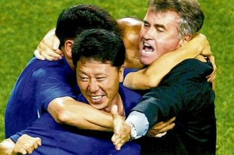 2002 Dünya Kupası'nın iki ev sahibinden birisi olan Güney Kore'nin başındayken Guus Hiddink adeta dünya futbol kamuoyuna ders verdi. Kimsenin şans tanımadığı Güney Kore ile ABD, Portekiz ve Polonya'nın bulunduğu gruptan yenilgisiz çıktı ve ikinci turda İtalya'yı çeyrek finalde ise penaltılarla İspanya'yı elemeyi başardı. Yarı finalde ise rakip Almanya'ydı ve takımız Ballack'ın golüne engel olamayarak mağlup oldu. Hiddink'in şansının tutmadığı takımlar sıralamasında sanırız Hırvatistan ve Almanya kendilerine önemli yerler bulacaktır. Yine bir Üçüncülük maçı oynama şansı yakalayan Hiddink ile yollarımız bu sefer Daegu Stadı'nda kesişti ve karşılaşmayı 3-2 kazanarak tarihimizdeki en büyük başarıya imza attık. Hırvatistan ve Almanya'nın yanına bir de Türkiye'yi eklememiz gerekebilir. Kültürüne oldukça bağlı bir millet olan Korelilere bile değişim ne demek öğreten Hiddink, Güney Kore'de halen bile oldukça çok sevilen bir isim. Adı bir stadyuma verilirken, neredeyse bir marka olarak orada halen ismi ve fotoğrafları kullanılıyor. Takımın başına ilk geçtiği dönmelerde takım içi hiyerarşiyi yıkan Hiddink'in şansı ise artık Dünya futbolunda söz sahibi olmak isteyen ve hepsi üniversite mezunu Koreli futbolculara “nasıl futbol oynanır?” konusunu öğretmekte zorlanmamış olmasıydı.