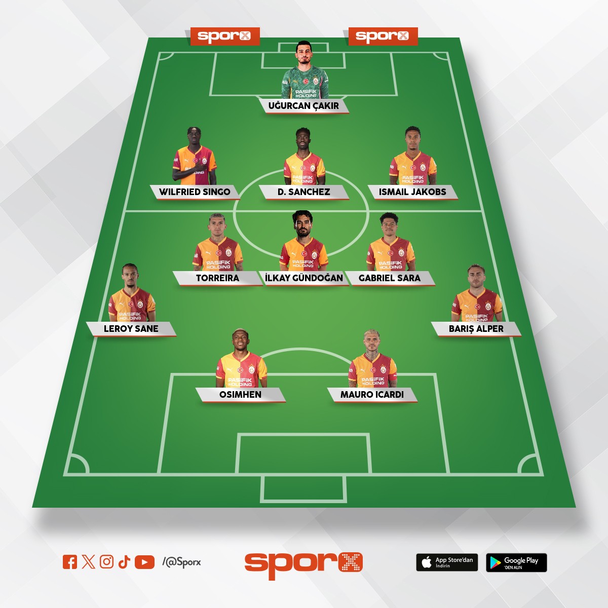 Galatasaray Abdulk,Jacob,Salai,Lemin,İlkay,Yunus,Barış,Icardi.