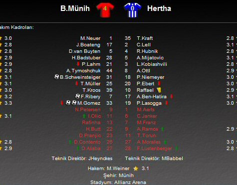 Almanya Ligi Bundesliga'da 9. hafta maçında, şampiyonluğun en büyük adaylarından Bayern Münih ile Hertha Berlin, Allianz Arena'da kozlarını paylaştı. Ev sahibi ekip maçtan 4-0 galip ayrıldı ve haftayı üç puanla tamamladı.