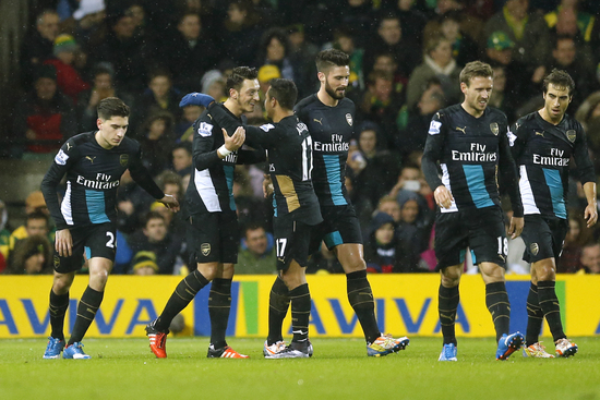 Türk asıllı Alman futbolcu Mesut Özil'in gol attığı karşılaşmada Arsenal, deplasmanda Norwich City ile 1-1 berabere kaldı. Son dönemde sakat futbolcularının fazlalığı nedeniyle sıkıntı yaşayan Arsenal'da Koscienly 11. dakikada, Sanchez ise 60. dakikada sakatlanarak oyuna devam edemedi. Özil, sezon başından bu yana 11 asist ve 2 golle takımının skor yükünü önemli katkıda bulundu.