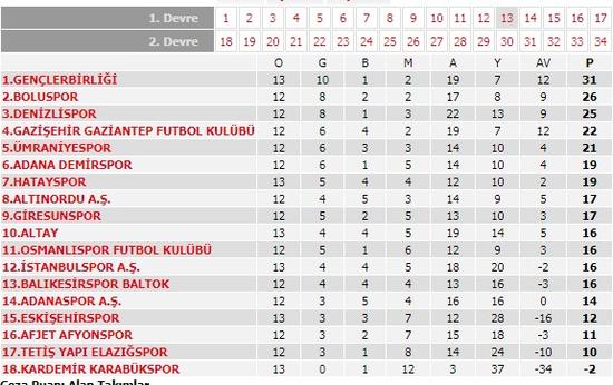 - Puan durumu