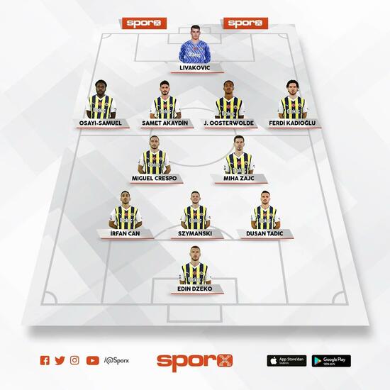 Fenerbahçe: Livakovic, Osayi, Samet, Oosterwolde, Ferdi, Zajc, Crespo, Szymanski, İrfan Can Kahveci, Tadic, Dzeko
