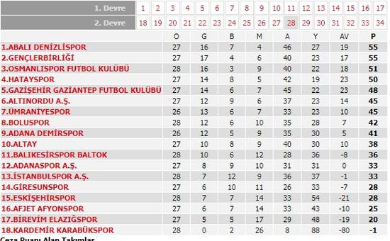 - 28. haftanın programıNot: Kardemir Karabükspor'un 3 puanı silinmiştir.