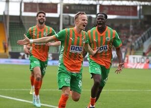 26. dakikada Alanyaspor öne geçti. Janvier'in pasında topla ceza sahası dışı çaprazında buluşan Hadergjonaj'ın şutunda meşin yuvarlak ağlarla buluştu: 1-0.