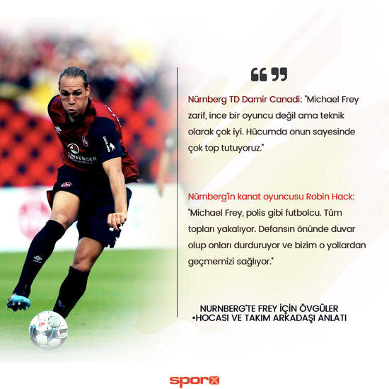 Nürnberg Teknik Direktörü Damir Canadi ise ''Michael Frey zarif, ince bir oyuncu değil ama teknik olarak çok iyi. Hücumda onun sayesinde çok top tutuyoruz.'' şeklinde konuştu.