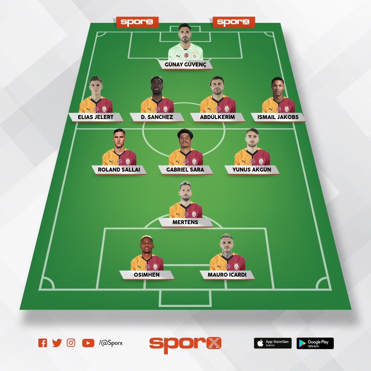 Galatasaray Abdulk,Jacob,Salai,Lemin,İlkay,Yunus,Barış,Icardi.