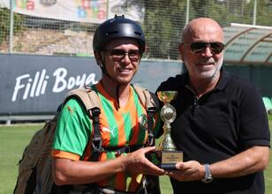 Harun Karateke beraberinde getirdiği kupayı Alanyaspor Kulüp Başkanı Hasan Çavuşoğlu'na takdim etti. Paraşütle iniş sırasında Harun Karateke'ye başka bir paraşütle kardeşi Faruk Karateke de eşlik etti. Harun Karateke, "Dünya üçüncüsü oldum. Alanyaspor taraftarı olduğum için aynı zamanda Alanyalı olduğum için bu kupayı Alanyaspor Müzesi'ne takdim ediyorum" dedi.