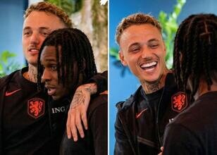 Hollandalı futbolcu Noa Lang, Liverpool forması giyen vatandaşı Frimpong ile milli takım kampında karşılaştı.