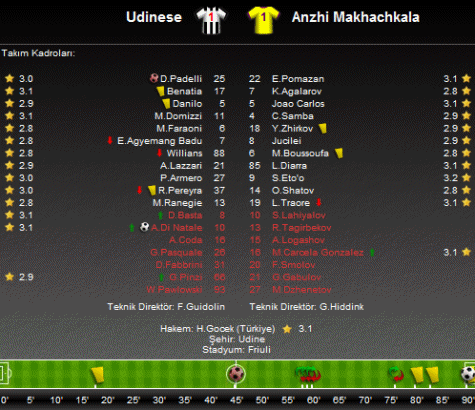UEFA Avrupa Ligi A Grubu ilk hafta maçında Udinese sahasında Anzhi'yi konuk etti.