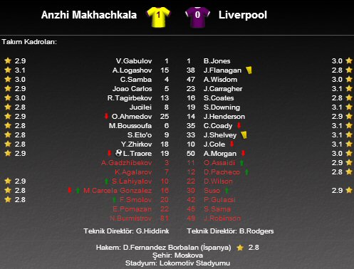 UEFA Avrupa Ligi A Grubu karşılaşmasında Guus Hiddink'in çalıştırdığı Anzhi Makhachkala sahasında Liverpool'u ağırladı.