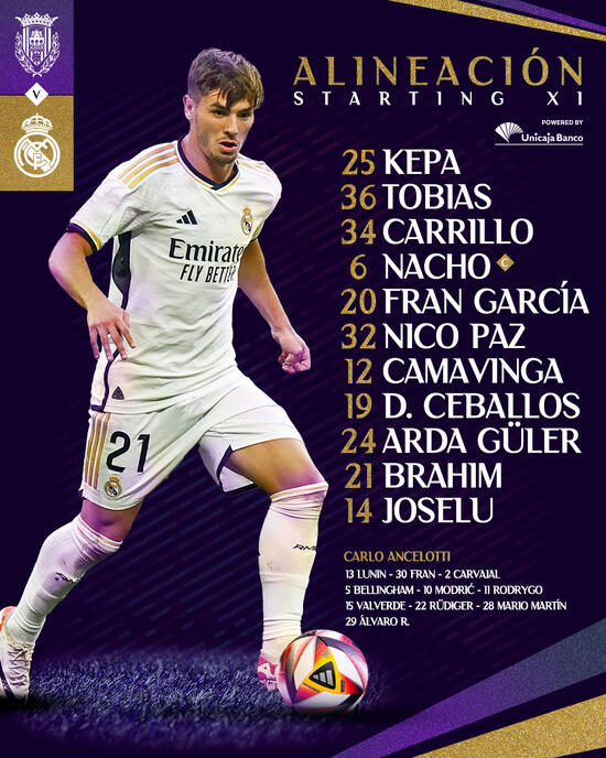 18 yaşındaki milli oyuncu, Real Madrid'in Arandina ile oynayacağı maça 11'de başlayacak.