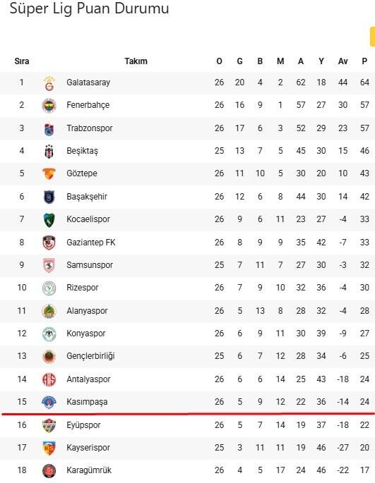 15 Kasımpaşa 26 5 9 12 22 36 24