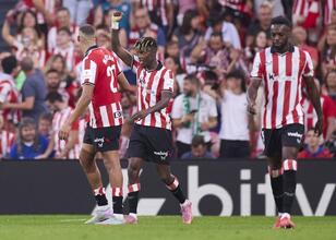 Athletic Bilbao, 36. dakikada penaltıdan vuruşundan Nico Williams'ın golüyle öne geçti. 43. dakikada Maroan Sannadi farkı ikiye çıkararak ilk yarının skorunu belirledi.
