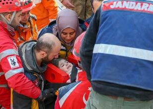 Kahramanmaraş merkezli depremlerden etkilenen Gaziantep'in İslahiye ilçesinde yıkılan bir binanın enkazından 132. saatte 4 yaşında kız çocuğu ve babası çıkarıldı.