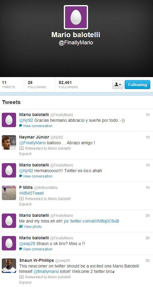 Balotelli, twitter üzerinden hayranlarının yanısıra; Brezilyalı Neymar ve Shaun W-Phillips gibi yıldız isimlerle de konuştu.