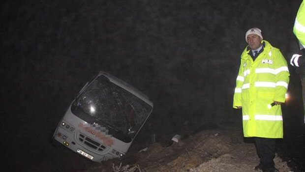 ilçesinin Sofrazlı mevkisinde Ahmet Tekin'in (45) kullandığı Melikgazi Belediyesi'ne ait otobüs, sürücünün direksiyon hakimiyetini kaybetmesi sonucu yoldan çıkarak devrildi.