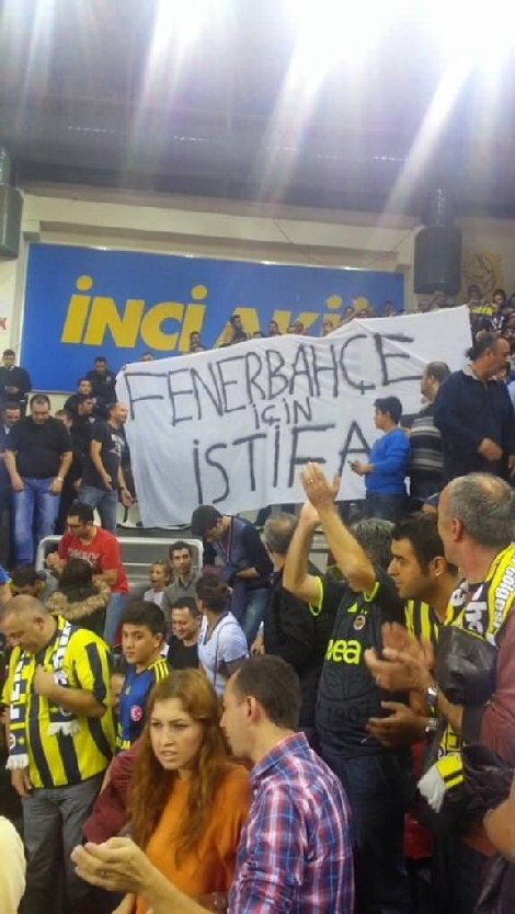 Fenerbahçeli taraftarların olduğu tribünde başkan Aziz Yıldırım için hazırlanılan bir pankart açıldı. Pankartta 'Fenerbahçe için istifa' yazısı dikkat çekerken tribünde 'Aziz Yıldırım istifa' tezahüratları da duyuldu.