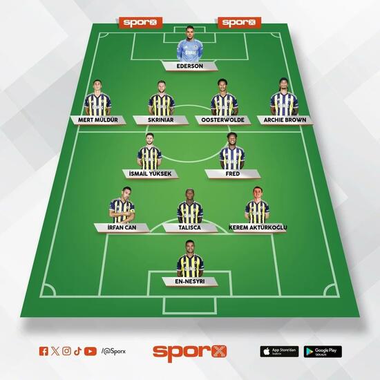 Fenerbahçe: Ederson, Mert Müldür, Skriniar, Oosterwolde, Archie Brown, İsmail Yüksek, Fred, İrfan Can, Talisca, Kerem Aktürkoğlu, En-Nesyri.