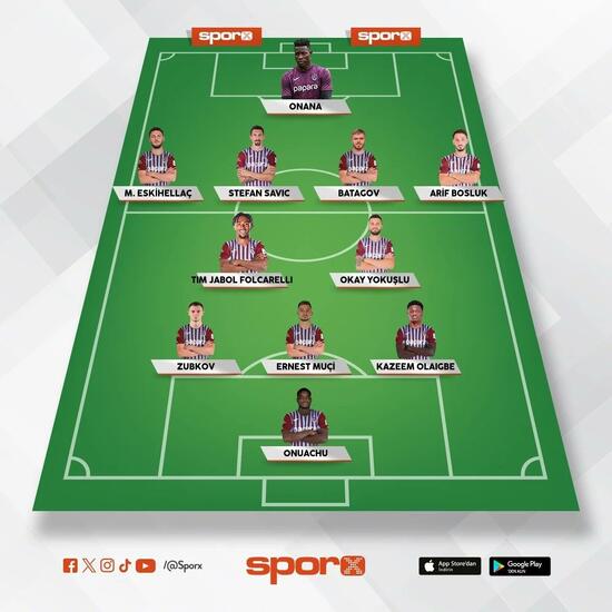 Trabzonspor: Onana, Mustafa Eskihellaç, Savic, Batagov, Arif Boşluk, Zubkov, Folcarelli, Okay Yokuşlu, Olaigbe, Ernest Muçi, Onuachu.