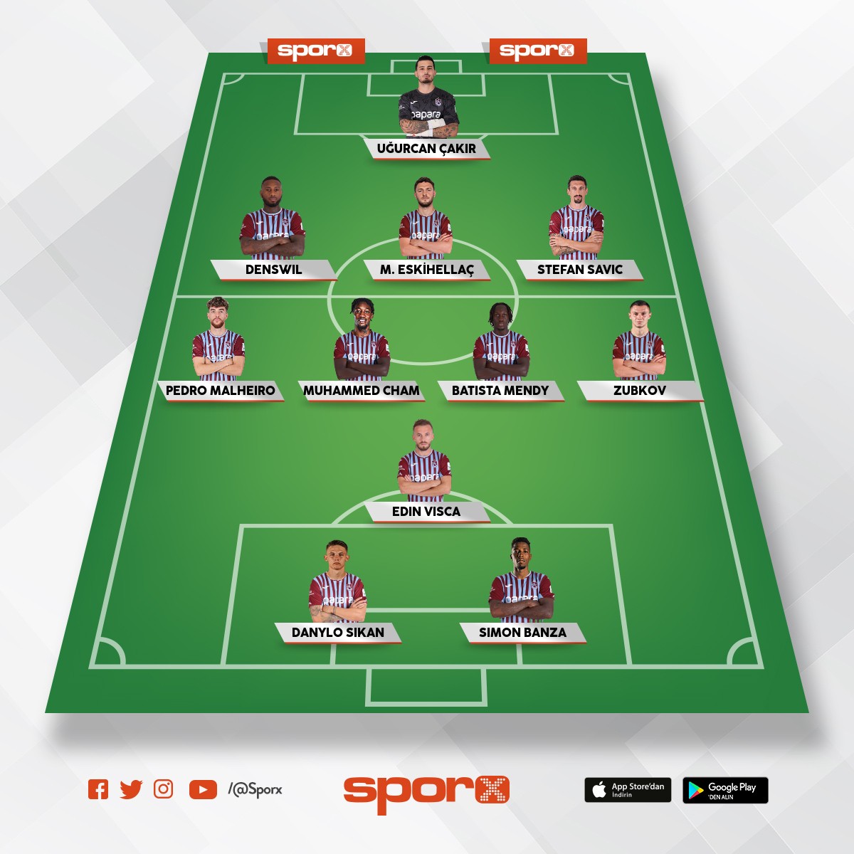 Cimbom Galatasaray: Uğurcan Çakır, Kazımanın, Sanchez, Abdülkerim, Singo , İlkay Gündoğan, Torreira,