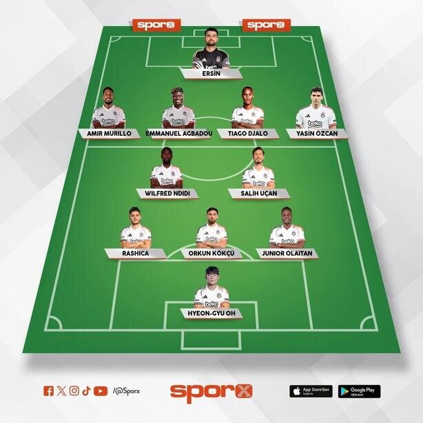 Beşiktaş: Ersin, Murillo, Agbadou, Djalo, Yasin, Ndidi, Orkun, Rashica, Cerny, Olaitam, Oh